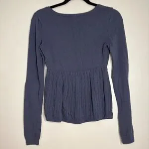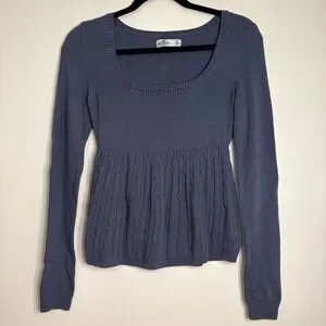 Keywords: Hollister, Knit Top, Babydoll Top, Long Sleeve, Square Neck, Blue Sweater, Women's Top, Casual Top, Fitted Bodice, Cable Knit, Comfortable Top