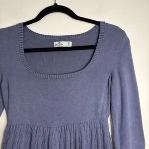 Hollister Long Sleeve Babydoll Knit Top Square Neck Women's Blue