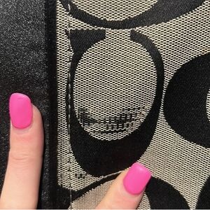 Stylish Coach shoulder bag with iconic black and tan pattern. Perfect for any occasion.