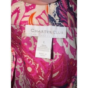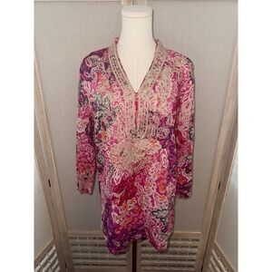 Keywords: Charter Club, tunic top, floral print, pink top, bohemian style, embroidered top, womens tunic, 3/4 sleeve, resort wear, casual top, summer top, vacation wear