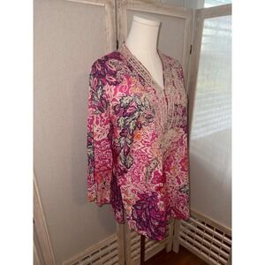 Charter Club Womens Pink Floral Embellished 3/4 Sleeve Tunic Top Size Large