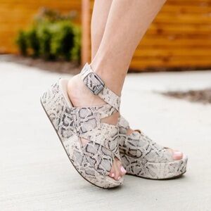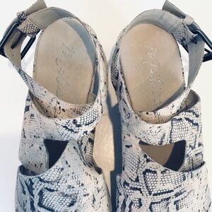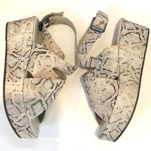 Matisse Runaway Snake Print Leather Flatform Platform Ankle Strap Sandals.