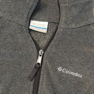 A Columbia classic. Crafted with lightweight, plush fleece, zippered pockets, and a cold-blocking collar, it’s an essential you can wear in cool weather or under a jacket for extra warmth. Zipper pockets and draw-cord adjustable hem. In great condition.