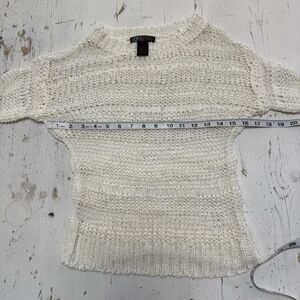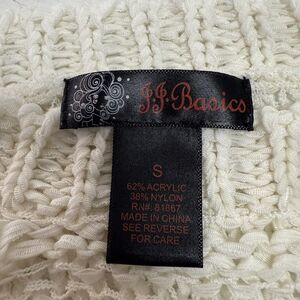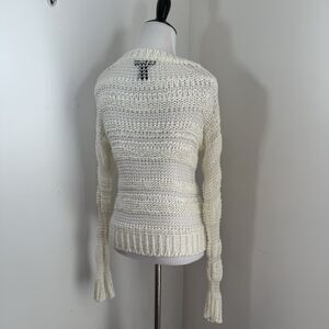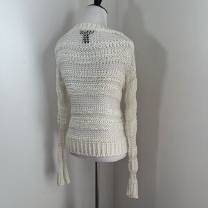 J J Basics Y2K Sweater Top S Ivory Crochet Stretchy Mesh Knit Crewneck Pullover
