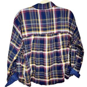 Anthropologie Pilcro Cropped Plaid Button-Down Shirt Top Blue Small Oversized