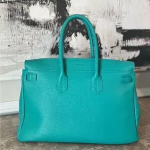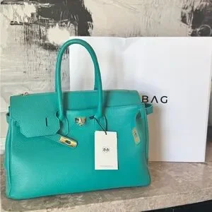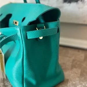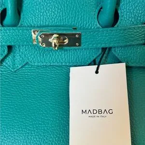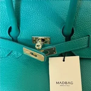 MadBag BIRKIMAD 40 Structured Italian Leather Tote – Teal NWT