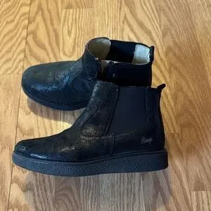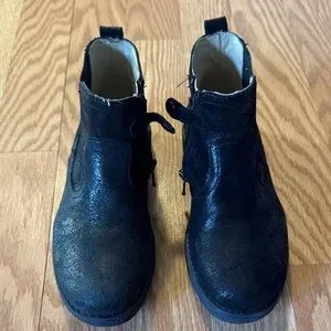 Durable, stylish black kids boots are perfect for any occasion. Super comfortable and great for cold, snowy days. Suede, black sparkle. Size 30 EU, 12.5 US