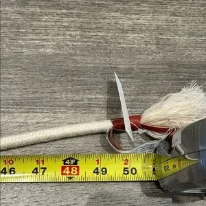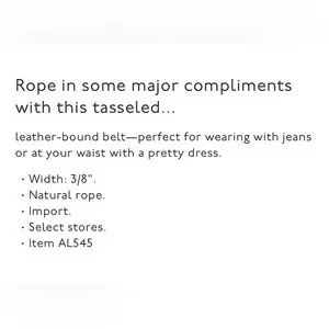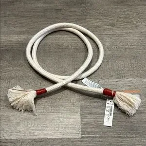 New with tags, never worn. Size XXS-S. Not including tassels on ends, length is about 50.5 inches.