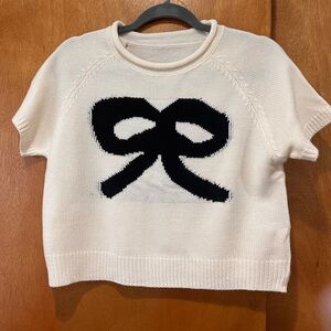 NWOT Cream Sweater with Black Bow Design