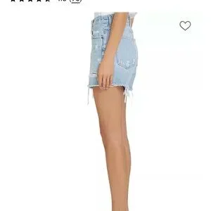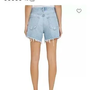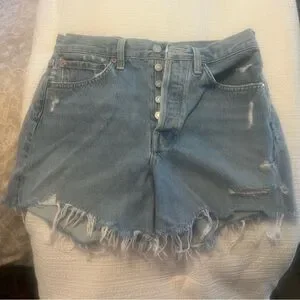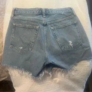 Chic distressed jean shorts. Light blue with frayed hem. Button fly closure. Only worn a few times — these are basically brand new. I love them but went down to the size 25 and couldn’t return the size 26. I would say these are TTS — I’m a true 25 in jeans and the 25 fits me perfectly, so these 26 will fit someone that is a size 26 in jeans.