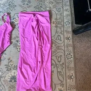 Bold hot pink fabric. Soft and stylish design.both are XL nevwr worn bought for vacation then lost weight.