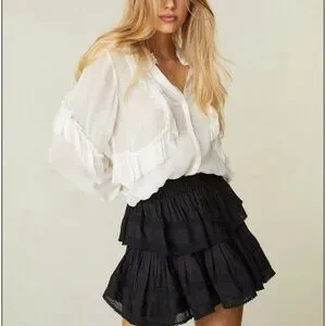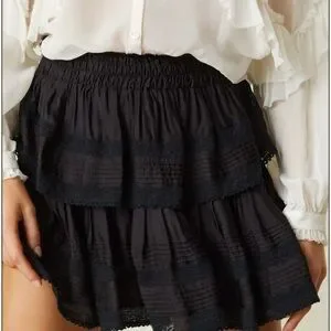 Never worn with tags Love Shack Fancy Black Ruffle mini skirt size Small.