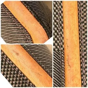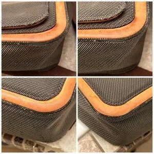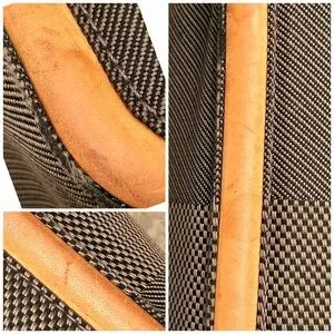 Some water marks, discoloration and dryness on leather vachetta. No rips or tears.