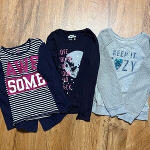 Lot of girls size 7 long sleeve and leggings clothing - 20 total items. 6 pairs of leggings, 5 pairs of pajamas, 9 long sleeve tops. GUC / smoke free home.
