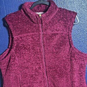 L.L. Bean Vest Full Zip Plush Burgundy Women's Size XL Zippered Pockets Casual