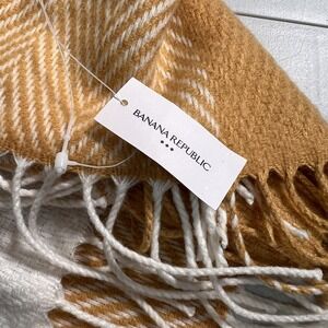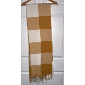Banana Republic Scarf Yellow Ivory Plaid Fringed NWT Classic Preppy Academia