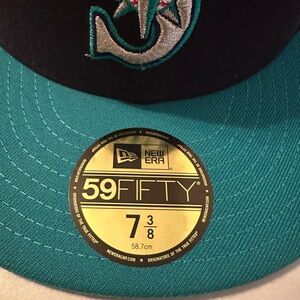 Seattle Mariners Hat Cap Fitted Mens 7 3/8 Navy Teal MLB Baseball New Era