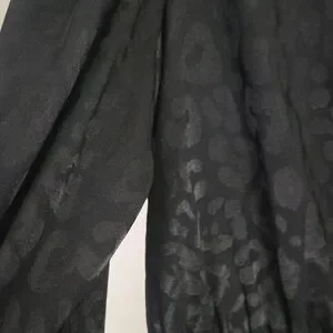 Chic charcoal dress with animal pattern. Long sleeves add elegance. Ideal for evening outings.