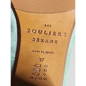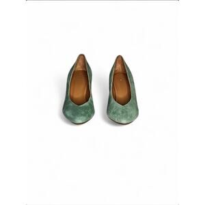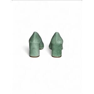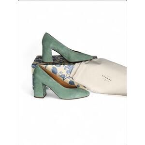NIB Sezane Alice High Heels Suede Block Heel Pump Green EU 37 /US 6