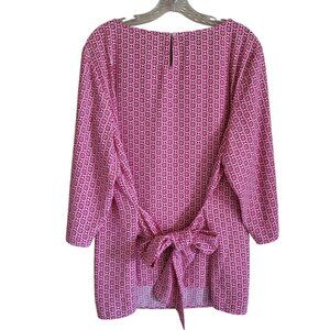 Talbots Boho Top Women's 2X Pink White Tie Waist Short Sleeve Zip Side Career