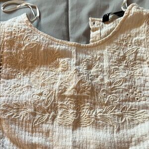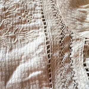 Zara Cream Lace Detail Cottagecore Quilt Pattern Puff Sleeves Ruffled Hem Blouse