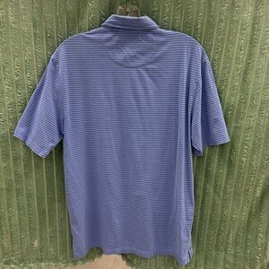 Johnnie-O Mens Cotton Polo, Light Blue & Navy Stripe size Small. 95% cotton 5% spandex. No stains or defects. General wash & wear. SF PF home