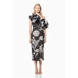 Elliatt Black and Cream Floral Midi Dress