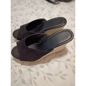 These women's black high wedge shoes in size 8 feature a velvet upper material and a stylish wedge heel. With a sleek black design, they are perfect for adding a touch of sophistication to any outfit. The comfortable wedge heel provides stability while the trendy style makes them a versatile and chic option for any occasion.