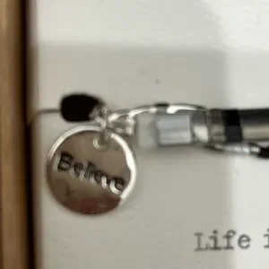 NWOT Stylish silver bracelet with black accents. Features an inspiring charm. Ideal for personal journeys.