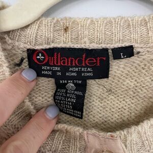 Vintage Outlander 100% Wool Womens Large Oatmeal Beige Color Button Up Cardigan