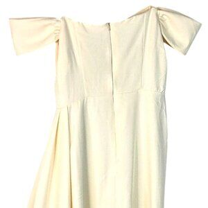 Ivory Off the Shoulder Long Train Layered Pleated Bridal Formal Gown Mid Size 14