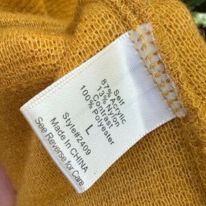 Chic mustard sweater. Features a crisp white collar and cuffs with contrasting black stitching.