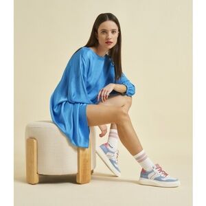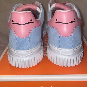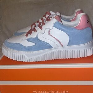 NWT VOILE BLANCHE LAURA Leather And Suede Sneakers in Light Blue-Cream