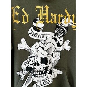Ed Hardy Death Or Glory Skull Graphic Hoodie Sweater Mens Size XL NWT NEW Olive Green