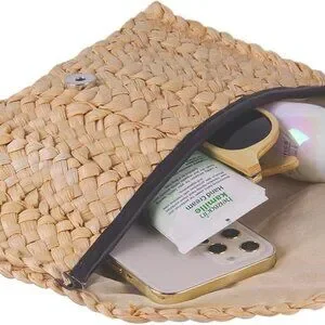 Material Women's straw clutch purses is made of 100% natural straw Material.Metal magnetic hasp,lightweight and durable.