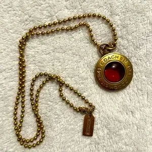 Coach Logo Pendant In Gold Tone with Amber Glass Center on Gold Tone Chain