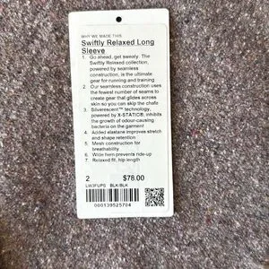 Lululemon Swiftly Relaxed Long Sleeve Top in Black (Size 2)