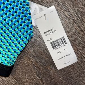 Vibrant teal with black accents. Sleek and supportive design. Ideal for active wear.