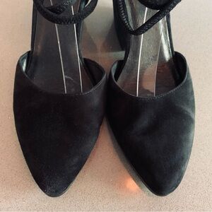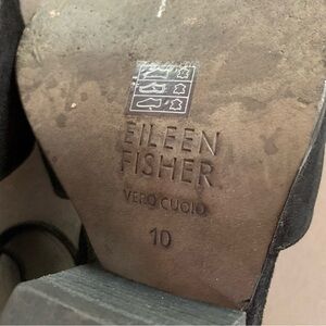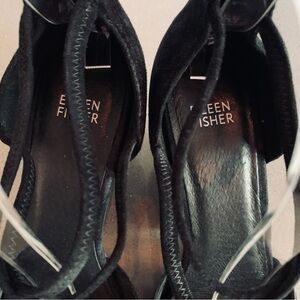 Eileen Fisher sz 10 Tilda Black Suede Rear Zip Stacked Heel Pumps Wedges Straps in very good condition. NOTE: first photo is a stock image.
