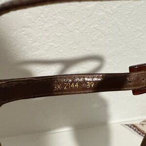 Chic brown leather wedges by Prada. Stylish cross-strap design. Ideal for versatile wear.