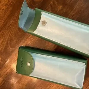 Stylish and durable, this Pair Eyewear set of glasses includes 2 cases, 2 stick on sunglass frame fronts, and 9 stick on frame fronts. You just need to have your prescription put into the frames. The style is The Twain