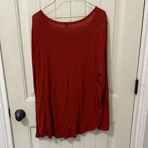 Chic and comfortable long sleeve top. Perfect for layering or wearing alone. Soft fabric with a relaxed fit. Rust color and gently worn.