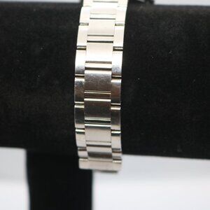 The Coach Swiss Quartz ladies watch with a new battery is a stylish and classic timepiece perfect for women. It features a stainless steel tank style case with a polished finish and a hidden fold clasp closure. The watch has a silver dial with Arabic numerals and a logo pattern, housed in a water-resistant stainless-steel case. The quartz movement and 12-hour dial add practical features to this elegant timepiece, making it a versatile accessory for any outfit. Made in Switzerland, this wristwatch is a timeless piece that exudes sophistication and quality craftsmanship.