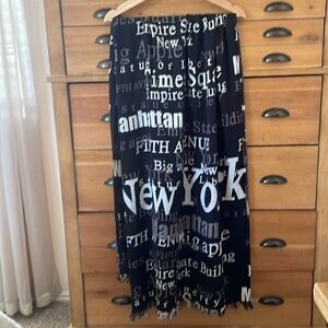 Soft, stylish comfortable scarf with New York and sights spelled out. Fringe edge.