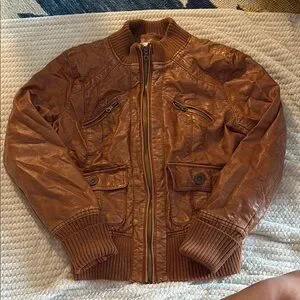 Stylish, neutral brown bomber jacket for women. Perfect for a casual or semi-formal look. Beautiful camel color, good used condition. Minimal piling. 18” pit to put, 23” long top to bottom. Needs a steam. Make me an offer.