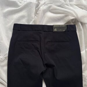 NWT Banana Republic Women’s “Sloan” dark navy blue pants in a size 4R. These signature bi-stretch Sloan pant are engineered to provide comfort and hug your silhouette while retaining its shape. Making them a classic wardrobe staple and are a customer-favorite. These ankle length pants feature a hook-and-bar closure with zip fly and belt loops.
