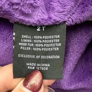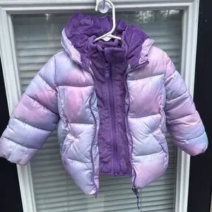 (EUC) Snozu Girl’s Zippered Fleece Lined Puffer Coat (missing faux fur around edge of hood)(Size: 2T)