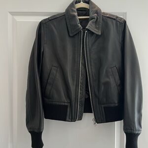 Amazing leather bomber! Functional front pockets with snap closure. Cropped fit.