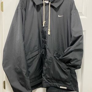 Like new black jacket with hood, snap front closure, zip pocket and Nike logo. 3XL