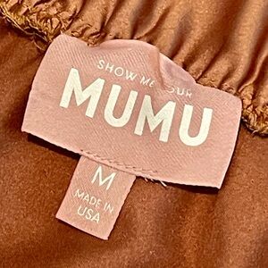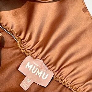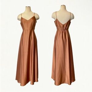 Show Me Your Mumu Faith Maxi Dress in Copper Luxe Satin, Tag Size Medium, one small stain on inside of back—not noticeable when worn (shown in last photo)